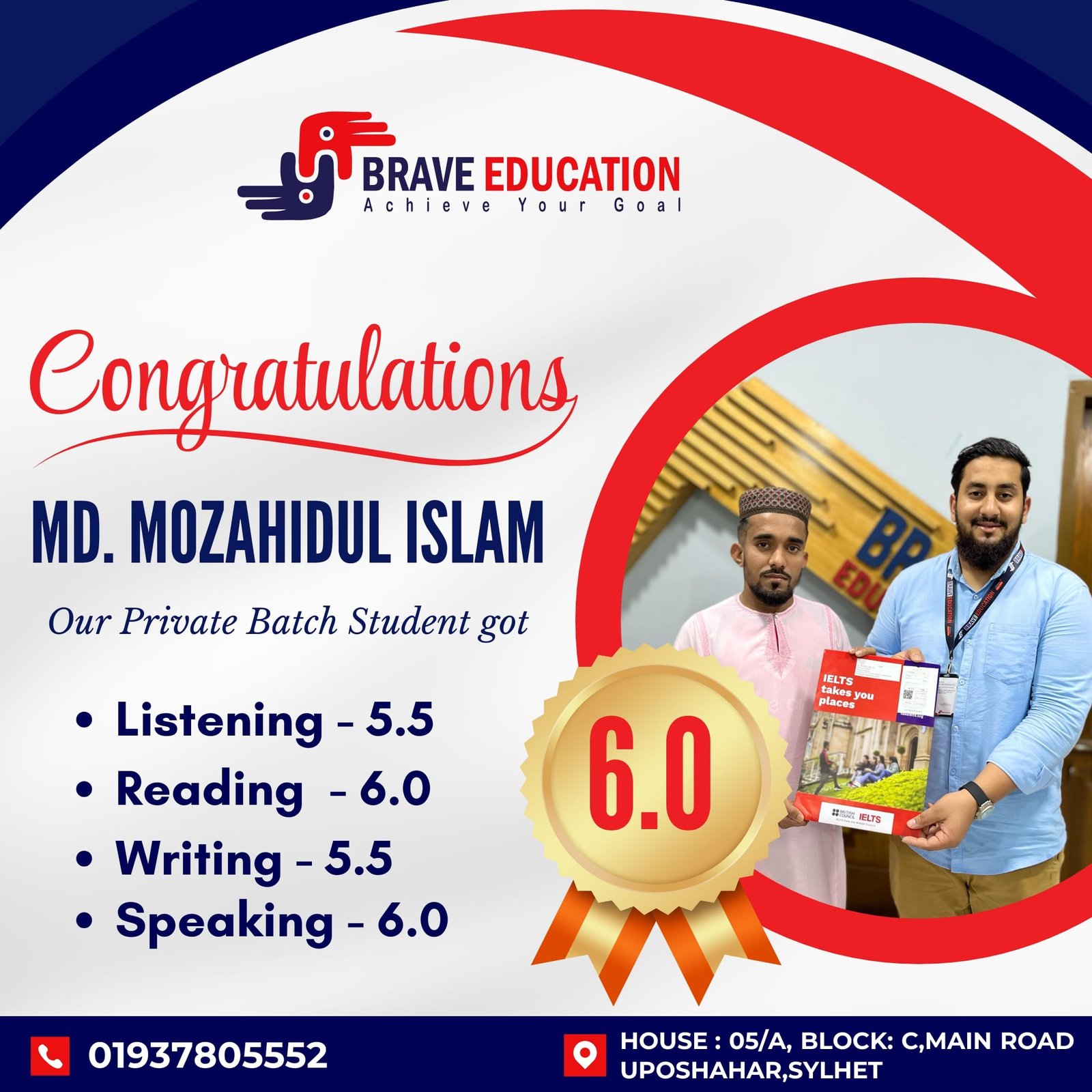 Brave Education এর পক্ষ থেকে Md.Mozahidul Islam কে জানাই আন্তরিক অভিনন্দন।